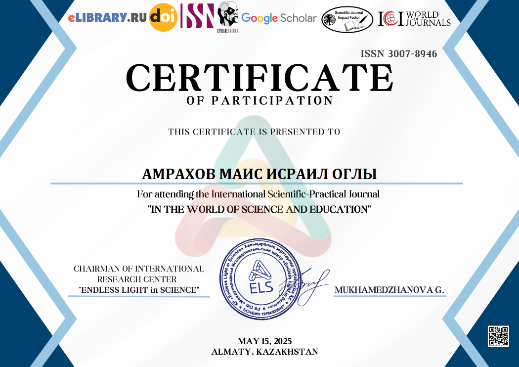 Qazaxıstanın beynəlxalq indeksli impakt faktorlu “ENDLESS LIGHT in SCIENCE” jurnalında AMEA A.A.Bakıxanov adına Tarix və Etnologiya İnstitutunun baş elmi işçisi, tarix elmləri doktoru, professor Mais Əmrahovun “Роль Азербайджанской ССР в советско-иранских культурных связях в годы Великой Отечественной войне Советского Союза” adlı məqaləsi çap olunub.